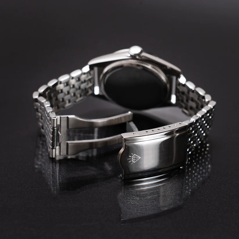 1940年代のマスターピースと呼ばれるヴィンテージウオッチの普遍美を再現。FBC01とのケース違いで、ラグ間にカバーが無いノーマルラグモデルです。ブレスレットのエンドピースはストレート形状ですので、時計本体との装着部分には隙間が有るデザインです。